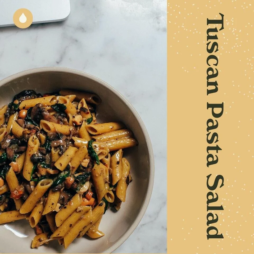 I always forget how much I love pasta salad in the summer! Now, we aren’t talking about the traditional mayonnaise filled ones you used to see at potlucks, although those can be yummy too! We are talking about a fresh, vegetable-packed option tossed with a delicious dressing made with essential oils! I love taking something like this to a cookout or having at home with something off the grill. - Lauren